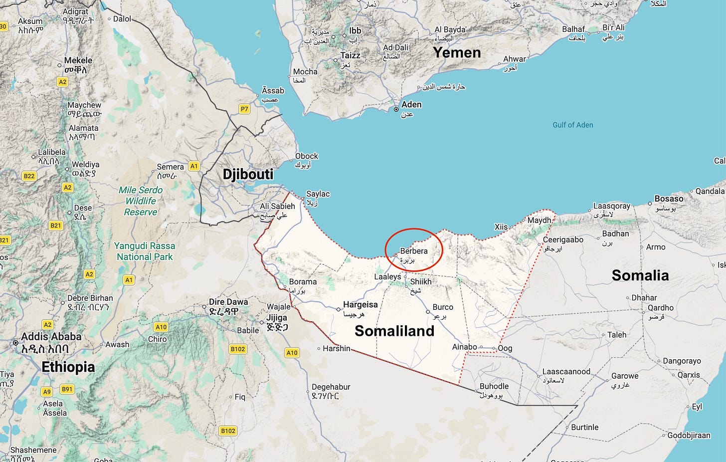 For Somaliland, the breakthrough came last December, when Israel formally recognized it as a sovereign state. Somaliland, as the maps show, sits near the entrance to the Red Sea, and just across the Gulf of Aden from Yemen, home of the Houthis, which would presumably be Israel’s main strategic interest.