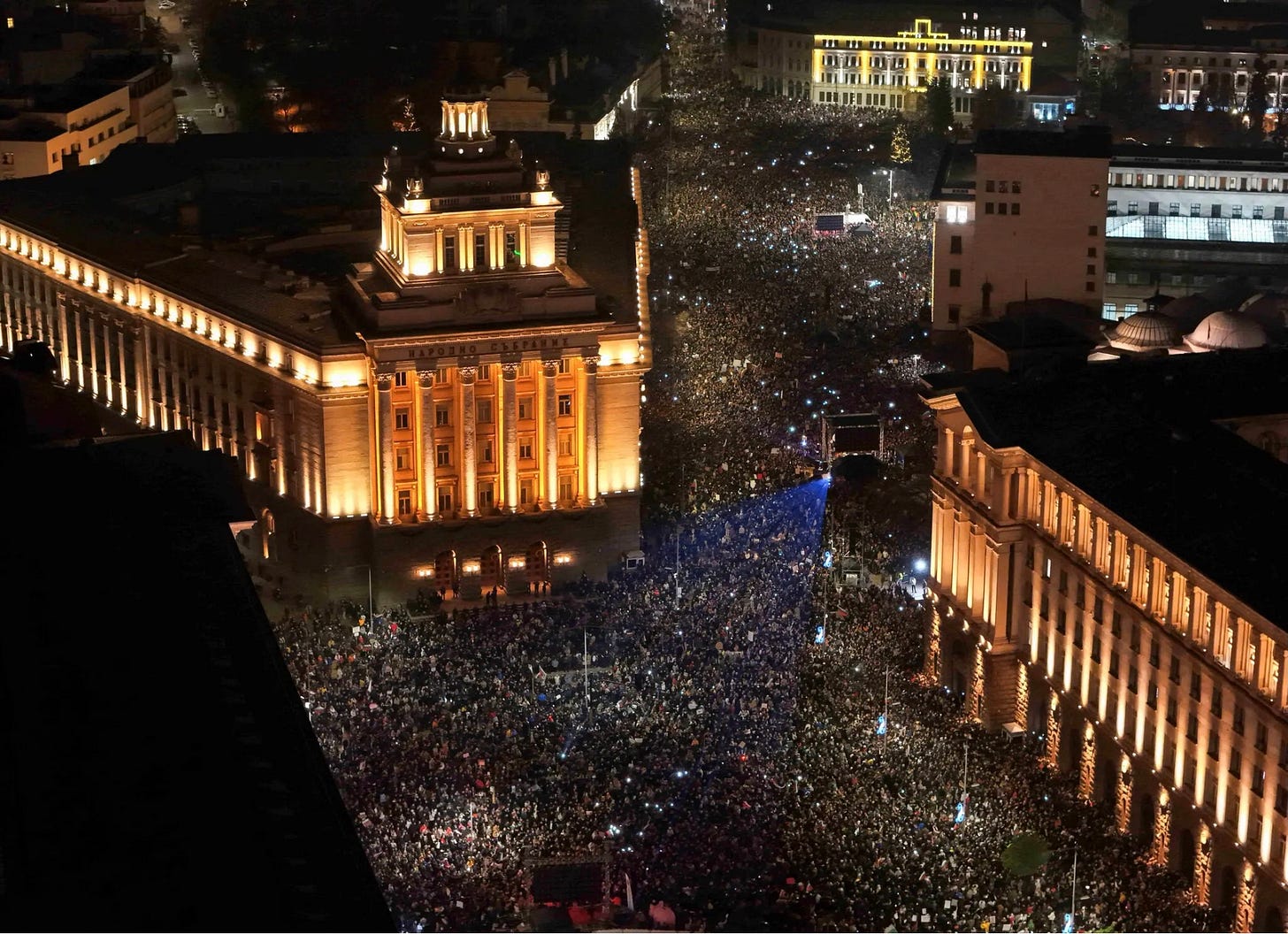 BULGARIA: A convincing crowd in Sofia prompted Bulgaria’s latest Prime Ministerial resignation this week. On Wednesday night protesters used lasers to project the words “Resignation”, “Mafia Out” and “For Fair Elections” on the parliament building.