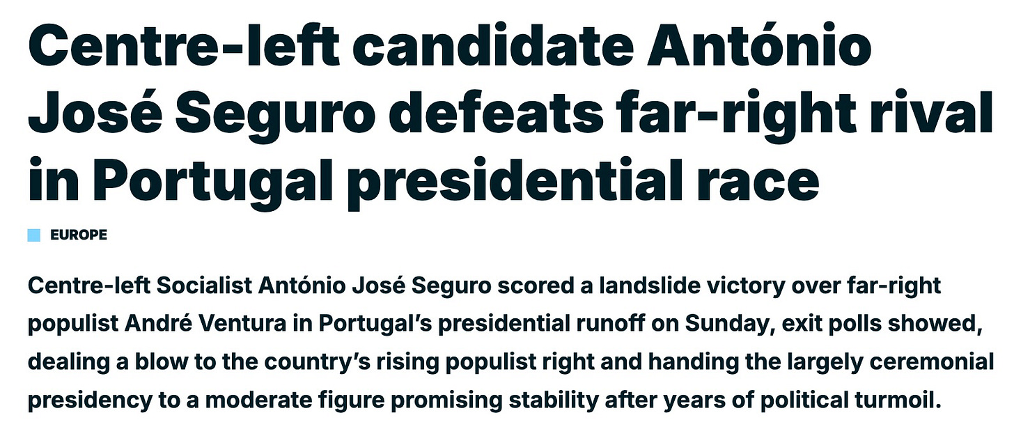 EUROPEAN FAR RIGHT WATCH: They called it a landslide - another defeat for a far right nationalist party in Europe, this time in Portugal’s presidential race on Sunday, February 26th: